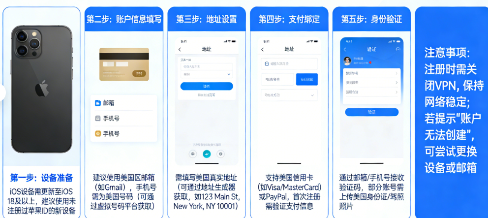 90%的用户注册美区ID失败、被迫绑定付款方式,都是因为步骤顺序错误、未彻底退出原有ID或地区切换未生效。按照以下流程操作,可100%跳过付款环节,零成本完成注册,适配iPhone、iPad全机型、全系统版本。